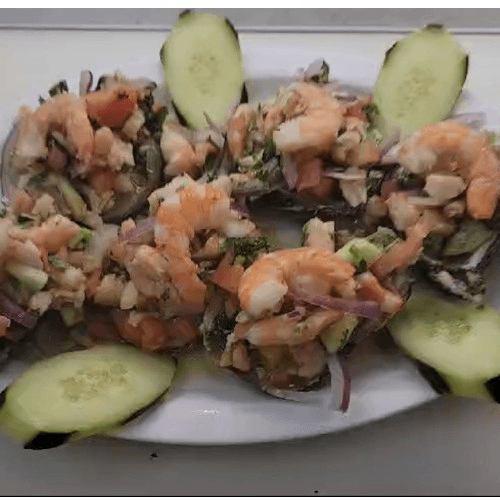 Camarones empanadas, pulped, ostiones y calamar, breaded shrimp, octopus oyster and calamari